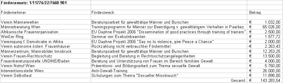 Es darf mitgeteilt werden, dass diese die Voranschlagsansätze des vormaligen Bundesministeriums für Bildung, Wissenschaft und Kultur (jetzt Unterricht, Kunst und Kultur) betreffen und aus diesem Grunde vom Bundesministerium für Inneres nicht beantwortet werden können.
