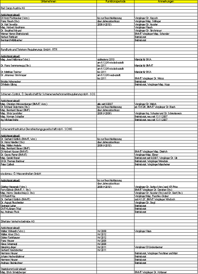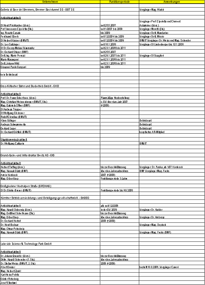 Eine Aufstellung bezüglich der AUFSICHTSRÄTE ist meiner Anfragebeantwortung angeschlossen.