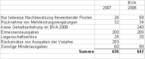 Die Konsolidierungsbeiträge in Höhe von 620 Mio. € für 2007 und 640 Mio. € für 2008 setzen sich wie folgt zusammen: