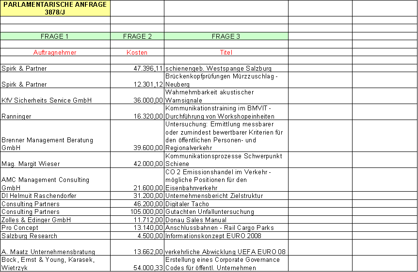 Die schriftliche parlamentarische Anfrage Nr. 3878/J-NR/2008 betreffend Beratungsverträge und Studien, die die Abgeordneten Karl Öllinger, Freundinnen und Freunde am 14. März 2008 an mich gerichtet haben, beehre ich mich wie folgt zu beantworten: