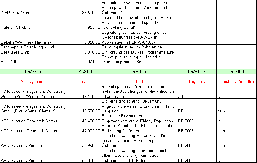 Was waren die konkreten Aufträge und Dienstleistungen der einzelnen Verträge bzw. worin besteht der konkrete Inhalt der Verträge mit den zu Frage 1 beauskunfteten Unternehmen oder Personen?