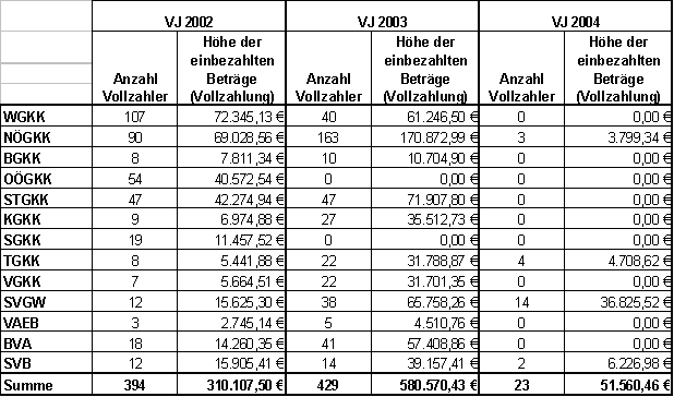 Bemerkt wird, dass die der Klage stattgebenden Fälle ausschließlich auf Grund neu vorgebrachter Fakten, wie etwa berichtigter Daten, zu Gunsten der Kläger/innen entschieden wurden.