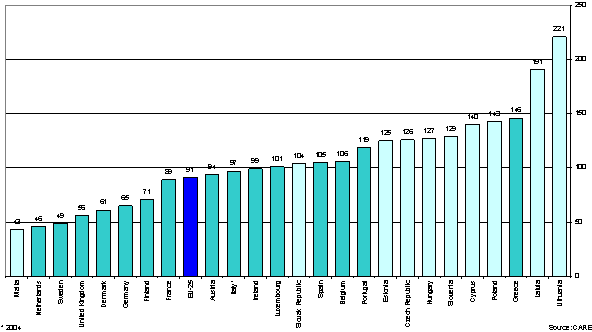 Eine Darstellung der 25 EU-Mitgliedstaaten bezogen auf Getötete je 1 Million Einwohner für das Jahr 2005 ist in Bild 1 enthalten. Neuere Daten stehen noch nicht zur Verfügung. Eine Darstellung der Unfälle von Schülern für die 27 EU-Mitgliedstaaten ist leider ebenfalls nicht verfügbar.