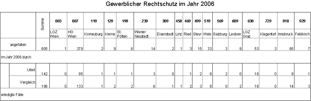 im Fallcode 41 („Gewerblicher Rechtschutz“) gemeinsam erfasst. Die fallbezogene Auswertung ist als Beilage A angeschlossen.