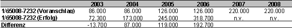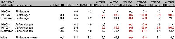 Dazu kommen noch die Mittel für unternehmensbezogene AM-Förderung, die von € 11 Mio. im Jahr 2006 auf € 3,8 Mio. in den Jahren 2007 und 2008 fallen.