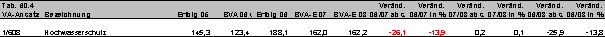 Der Überblick zeigt, dass die Steigerungen 2006/07 zum überwiegenden Teil auf zusätzliche Mittel des BMWF zurückzuführen sind (plus 12,7%); die anderen Ressorts haben dagegen Rückgänge zu verzeichnen (Ausnahme: BMWA und 'sonstige'). In Summe ist für 2007 jedoch aus den vorliegenden Unterlagen eine weitreichende Mittelausdehnung (plus 13,4%) abzulesen. Im Jahr 2008 ist dies nicht der Fall, die gesamten forschungsrelevanten Ausgaben des Bundes steigen lediglich um 3,3% gegenüber 2007. Damit fällt die Bundesregierung hinter ihren sich selbst gesteckten Wachstumspfad von jährlich plus 10% zurück.