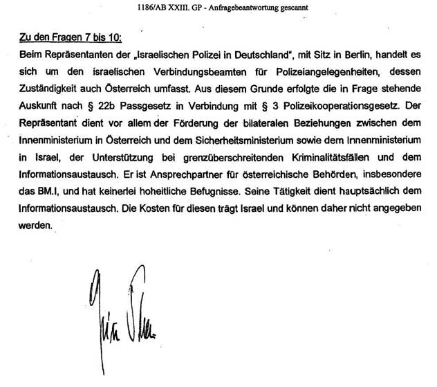 Das BMAA erwiderte daraufhin am 16.3.2000, dass Schlaff zwar keinen Diplomatenpass, wohl aber einen Dienstpass mit der Nr. S0003169 führe. Nach Nachfrage im eigenen Ministerium und weiterer Korrespondenz übermittelte die Generaldirektion f. d. öffentliche Sicherheit, Gruppe D - Interpol, Abt. II/8 - EDOK (MR Mag. Pretzner) an den „Repräsentanten der israelischen Polizei in Deutschland" in Bonn die Information, dass die für Dienstpässe zuständige Abteilung des Bundesministerium für Inneres mitteilte, dass für Mag. Martin Schlaff am 5.4.2000 mit Gültigkeit 4.4.2000 ein neuer Dienstpass mit der Nr. S0012547 ausgestellt wurde, da der bereits bekannte Dienstpass Nr. S0003167 „vollgestempelt" war.