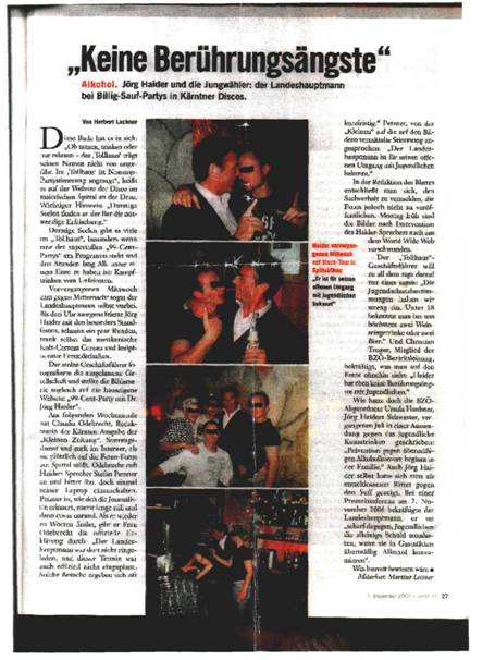 Sind Ihrer Einschätzung nach die, Landeshauptmann Dr. Haider im Profil 49/07 bisher zugeschriebenen Handlungen, welche durch die medial veröffentlichten Fotos untermauert werden geeignet - im Falle von möglicherweise betroffenen Jugendlichen - eventuell gegen geltendes gerichtliches Strafrecht zu verstoßen, oder sind diese Handlungen „lediglich" nach dem Kärntner Jugendschutzgesetz von Bedeutung?