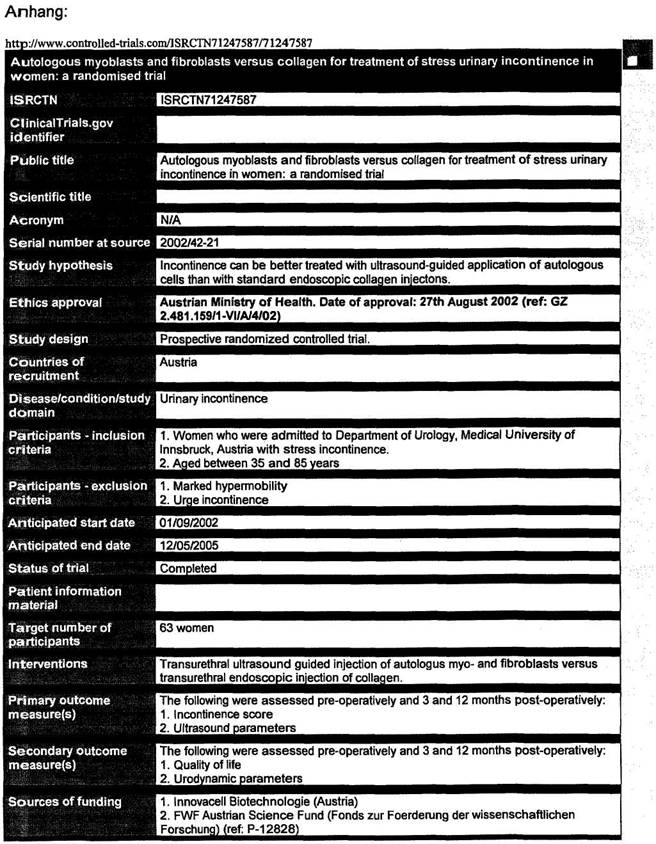 betreffend „Stammzellenforschung Universitätsklinik für Urologie Innsbruck"