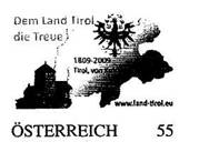 Herausgekommen ist eine 55-Cent-Briefmarke der österreichischen Post. Abgebildet sind Schloß Tirol bei Meran und das geeinte Tirol, also Nord-, Ost- und Südtirol, dazu die Schriftzüge „Dem Land Tirol die Treue“ und „1809-2009 Tirol von Kufstein bis Salurn.