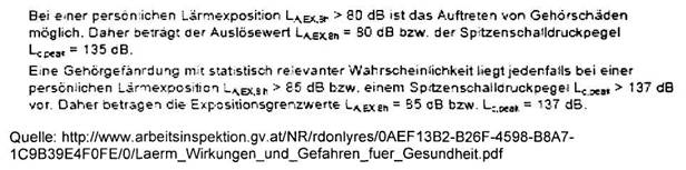 und ein Dauerschallpegel von 109 dB(A) gemessen. „Die Erklärung liegt in der Norm,