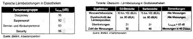 2004 wurden von den Arbeitsinspektionen die Lärmsituation in Pubs, Musikcafes, Tanzcafes und Diskotheken in ganz Österreich untersucht. Die Ergebnisse waren ernüchternd: In zwei Drittel aller untersuchten Bereiche wurden die Grenzwerte überschritten, auf jeden Fall aber in Bar- und DJ-Bereichen.