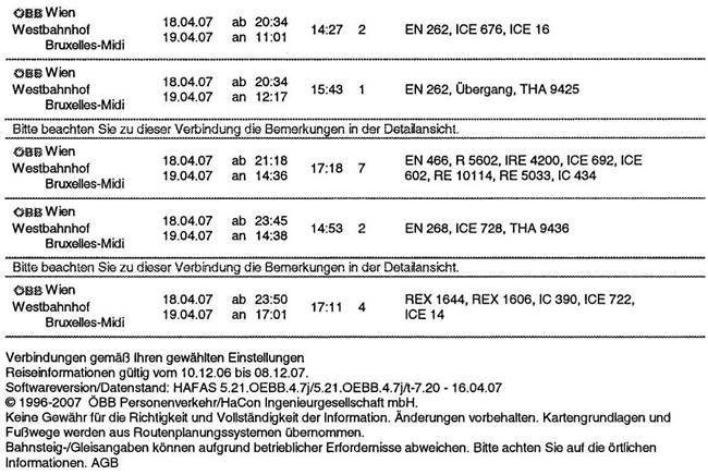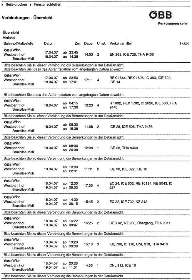 Gemäß Beilage (ÖBB-Ausdruck) geht aus dem ÖBB-Fahrplaninformationssystem