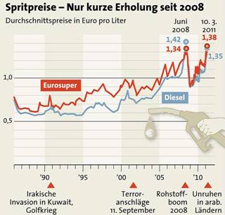 Seit Jahresbeginn 2011 ist der Spritpreis an den Tankstellen regelrecht explodiert und um rund 11% gestiegen. Die gewaltigen Preissteigerungen haben ihre Ursachen sicherlich auch in der Preisentwicklung an den internationalen Röhölbörsen, wo bedingt durch die unsichere Entwicklung im Nahen Osten, der Preis für ein Barrel Öl gestiegen ist, er hat aber auch einen großen Anteil, der durch die Politik dieser Bundesregierung verursacht wird. Der ARBÖ hat herausgearbeitet, dass der Spritpreisrekord mehrheitlich internationale Wurzeln hat. Der enorme Preisantrieb bei Diesel ist zu 62 Prozent international bedingt und zu 38 Prozent hausgemacht. Bei Eurosuper 95 sind 57 Prozent auf den generellen Preisanstieg zurückzuführen und 43 Prozent hausgemacht.