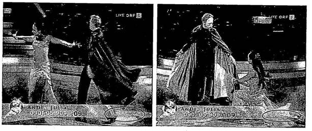 Als Beispiel werden hier zwei (Such-)Bilder aus der ORF-Fernsehsendung „Dancing Stars“ aus dem Jahr 2006 abgebildet. Wo versteckt sich die Entgeltinformation?