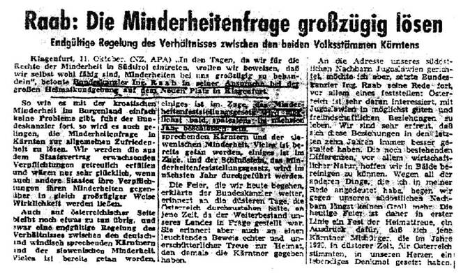 Eine solche Vorgangsweise ist international üblich; zum Vergleich kann darauf hingewiesen werden, dass die Republik Slowenien selbst im Jahr 2002 einen ethnischen Zensus mit Erhebung der Muttersprache und des Volkstums durchgeführt hat. Diese legistische Maßnahme würde auch die über 40 Jahre alte Ankündigung der großen Koalition eines „Minderheitenfeststellungsgesetzes“ erfüllen (vgl. nachfolgende Zeitungsmeldung: „Neue Zeit“, 12.Oktober 1960).
