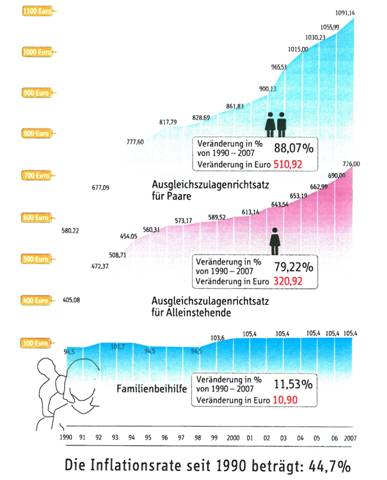 Betrachtet man die Kaufkraft dieser Beträge und rechnet diese auf das Jahr 2008 hoch, so stellt sich das Bild wie folgt dar: