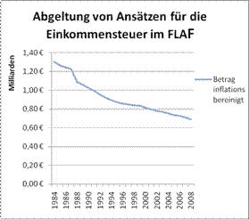 Der inflationsbereinigte Wert dieses Einnahmenpostens beträgt somit nur noch knapp über 50% des seinerzeitigen Wertes.