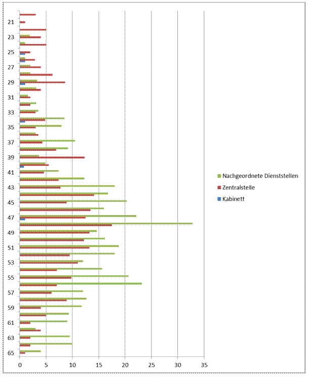 Die Altersstruktur der Mitarbeiter/innen meines Ressorts kann der folgenden Darstellung entnommen werden: