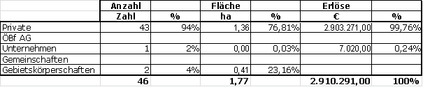 Aus der Veräußerung von Liegenschaften aus dem Eigentum der Republik (Österreichische Bundesforste) konnten im Jahr 2010 € 2.910.291,00 erzielt werden.