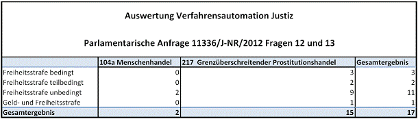 Ein Vergleich der verhängten Sanktionen zwischen Menschenhandel und grenzüberschreitendem Prostitutionshandel ist deswegen schwierig, weil nach der herrschenden Auffassung bei einem Zusammentreffen der beiden Bestimmungen § 217 StGB grundsätzlich vorgeht. Fälle des Menschenhandels zum Zwecke der sexuellen Ausbeutung werden daher, sobald sie grenzüberschreitender Natur im Sinne des § 217 StGB sind, grundsätzlich nur als Fälle des § 217 StGB ausgewiesen, sodass als Vergleichsgruppe für § 104a StGB im Bereich der sexuellen Ausbeutung nur die reinen Inlandsfälle in Frage kommen.