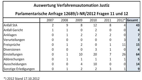 Gerichtliche Verurteilungen wegen § 48b BörseG scheinen in der Gerichtlichen Kriminalstatistik im Zeitraum 2007 bis 2011 als führendes Delikt nicht auf.