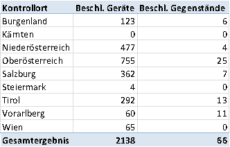 Von der österreichischen Finanzpolizei wurden nachstehend angeführte Glücksspielgeräte und sonstige Eingriffsgegenstände gemäß GSpG vorläufig beschlagnahmt:
