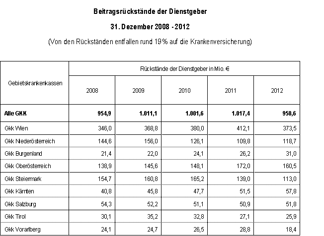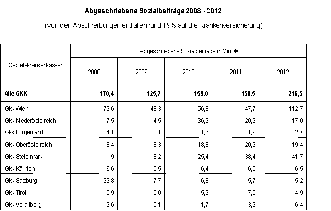 In den als uneinbringlich abgeschriebenen Beträgen sind allerdings aus folgendem Grund nur geringe Dienstnehmeranteile enthalten: uneinbringlich abgeschriebene Beträge resultieren überwiegend aus Unternehmensinsolvenzen. In diesen Fällen werden die Dienstnehmeranteile vom Insolvenz-Entgelt-Fonds entrichtet. Die abgeschriebenen Beträge umfassen daher überwiegend Dienstgeberanteile.