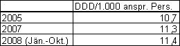 Die folgenden Zahlen stammen aus einer Stellungnahme des Hauptverbands der österreichischen Sozialversicherungsträger, der die DDD (= Defined Daily Dose) /1.000 anspruchsberechtigte Personen laut ATC-Code A10A (Insuline und Analoga) der WHO übermittelte, da auch ihm keine personen- bzw. diagnosebezogenen Daten zu insulinpflichtigem Diabetes im niedergelassenen Bereich zur Verfügung stehen.