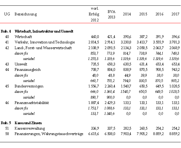 · Mit der wirkungsorientierten Budgetierung im Rahmen der zweiten Etappe der Haushaltsrechtsreform, die im Budget 2013 erstmals zum Tragen kommt, ist die Grundlage für eine kontinuierliche Steigerung der Effektivität und Effizienz der eingesetzten Mittel geschaffen.