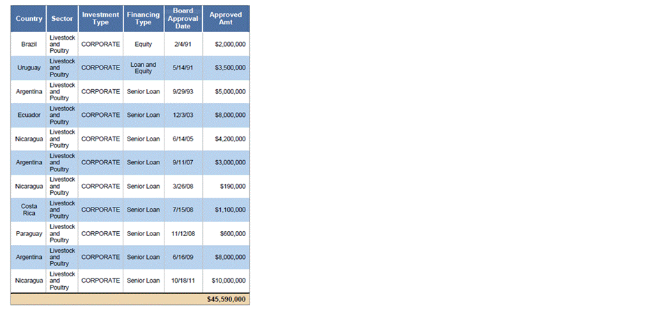 · Die Interamerikanische Entwicklungsbank hat im genannten Zeitraum einige Projekte durch ihre Privatsektorfinanzinstitution IIC finanziert (siehe Beilage).