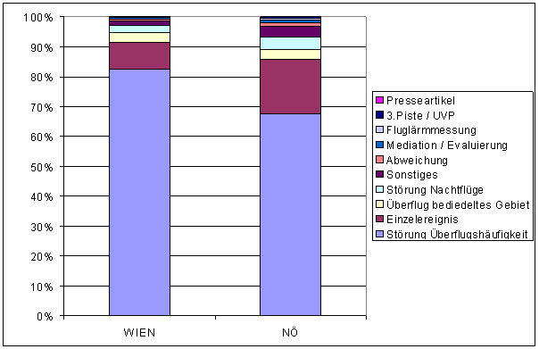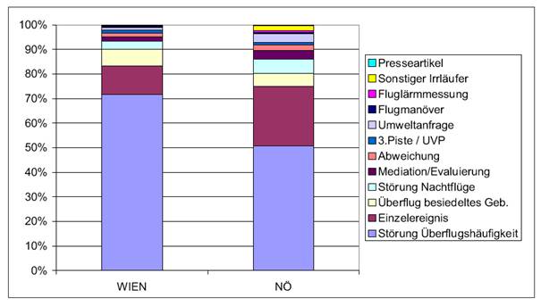 Häufigste Beschwerdegründe sind Einzelereignisse und Überflugshäufigkeit. Im Rahmen der Evaluierung findet alljährlich eine Auswertung der Beschwerden und Anfragen statt. Die Zahlen dazu sehen wie folgt aus: