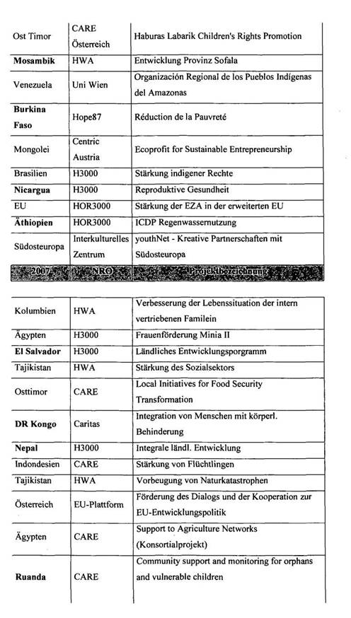 Jänner 2007 bis 31. Dezember 2009 eine OEZA-Förderung von €