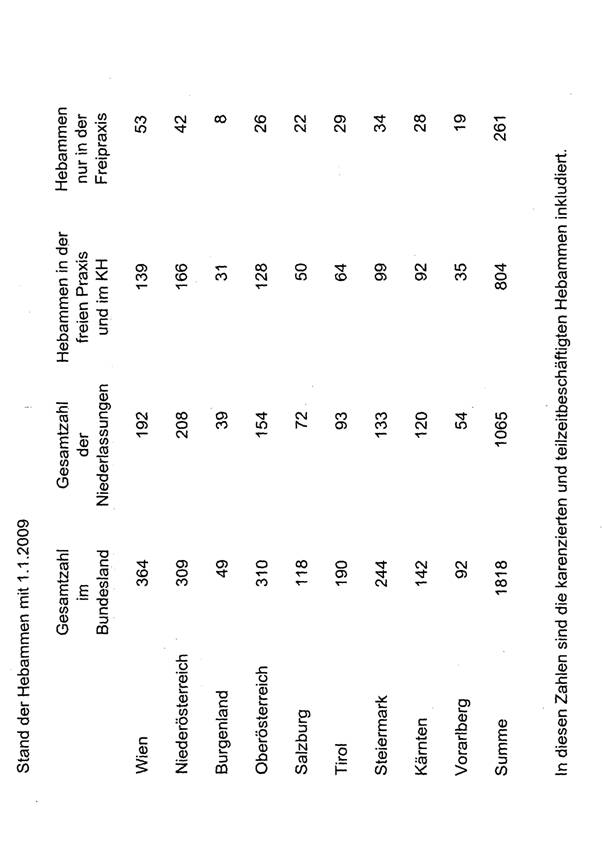 Ich verweise auf den beigeschlossenen Auszug aus der Standesmeldung des Österreichischen Hebammengremiums.