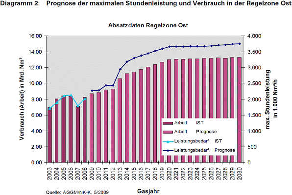 Nachstehend findet sich die in der "Langfristigen Planung 2009 für die Regelzone Ost für den Zeitraum Gasjahr 2010 – 2014" ("LFP09") der AGGM Austrian Gas Grid Management AG (Regelzonenführer der Regelzone Ost) enthaltene Prognose: