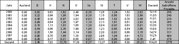 Da die Frage nach Rückforderungen nur in geringem Ausmaß für die im Berichtsjahr gegenständlichen Projekte bedeutet erfolgt hier eine aktualisierte Darstellung des Zeitraumes 2000 bis 2008.