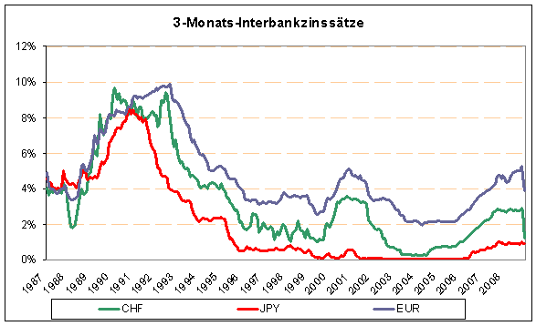 Zu beachten ist, dass aus Entwicklungen, die in der Vergangenheit zu beobachten waren, keine sicheren Prognosen für die Zukunft ableitbar sind. Auch die stabil scheinenden Zinsvorteile in CHF und JPY gegenüber EUR müssen in der Zukunft nicht unbedingt aufrecht bleiben.