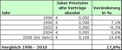 Die Provision für einen Joker Tipp ist 2010 um 17,8% höher als im Jahr 1996.