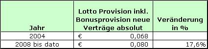 Die Provision für einen Lotto Tipp ist bei den neuen Verträgen seit 2004 um 17,6% erhöht worden.