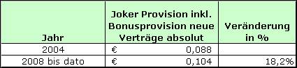 Die Provision für einen Joker Tipp ist 2010 im Vergleich zu 2004 um 18,2% erhöht worden.
