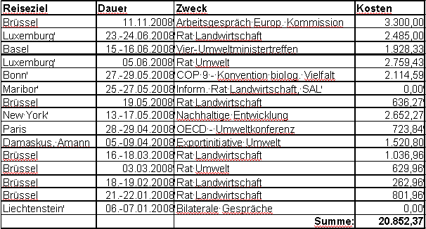 die Reisesucht der abgewählten Bundesregierung im Jahr 2008