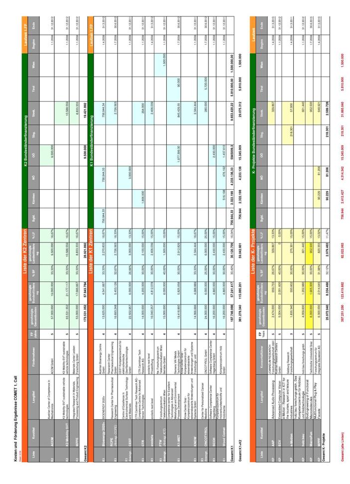 Seit Start des COMET Programms wurde eine Ausschreibung vollständig abgewickelt, in welcher drei K2 Zentren, 11 K1 Zentren und 6 K-Projekte genehmigt wurden. Die 2. Ausschreibung läuft derzeit, die Genehmigungen werden Ende Oktober 2009 feststehen.