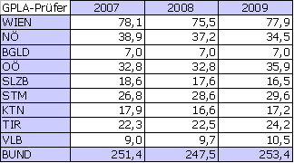 Nachfolgend wird der Personalstand an GPLA-Prüfern der Steuerverwaltung in VBÄ für die Jahre 2007 bis 2009 dargestellt.