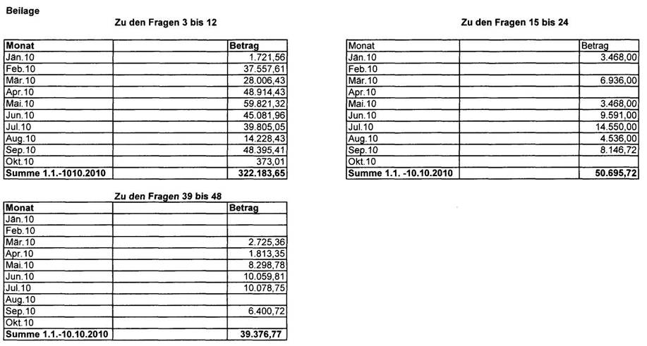 10. Oktober 2010 betrugen insgesamt € 50.695,72. Die Aufschlüsselung nach Monaten ist der beiliegenden Exceltabelle zu entnehmen.