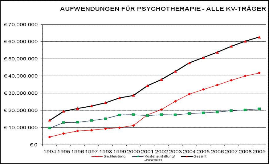 Der beiliegenden Darstellung der Aufwendungen der Krankenversicherungsträger für psychotherapeutische Leistungen kann diese - für die Anspruchsberechtigten positive Entwicklung - entnommen werden (siehe Beilage).