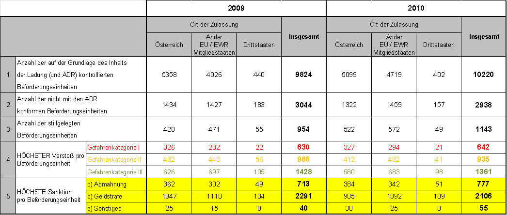 Im letztmaligen Bericht der Kommission an das europäische Parlament und den Rat (KOM(2010)364) scheint Österreich im Kalenderjahr 2006, unter „Häufigkeit der Kontrollen“ auf dem 3. Platz von insgesamt 28 Staaten auf. Österreich lag um 114 % über dem EU-Durchschnitt. 2007 scheint Österreich unter „Häufigkeit der Kontrollen“ auf dem 5. Platz von insgesamt 28 Staaten auf. Österreich lag um 105 % über dem EU-Durchschnitt.