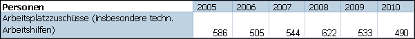 In den Jahren 2005 bis 2010 hat sich der Bestand (Jahresdurchschnittsbestand) an arbeitslosen registrierten begünstigten Personen mit Behinderung wie folgt entwickelt: