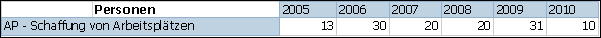 Das Kriterium eines mindestens zwölfmonatigen Beschäftigungsverhältnisses bedingt, dass beendete EB-Förderungen im Zeitraum Anfang Jänner 2005 bis Ende Februar 2010 ausgewertet wurden, nach dem Förderende Februar 2010 ist ein längeres Beschäftigungsverhältnis als 12 Monate zum gegenwärtigen Auswertungszeitpunkt nicht möglich. Dies erklärt, warum die in der Auswertung für 2010 ausgewiesenen Personen (Abgänge aus EB-Förderung Jänner und Februar 2010) deutlich geringer sind als in den vorgehenden Gesamtjahren.