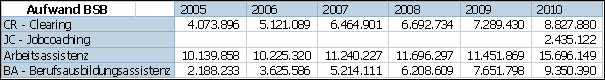 Die Förderinstrumente (etwa der Begleitenden Hilfen) unterlagen in den letzten Jahren dynamischen Entwicklungen und waren daher unterschiedlich bezeichnet und gruppiert. Der Begriff der „Begleitenden Hilfen“ umfasst aktuell die Maßnahmen Clearing, Berufsausbildungsassistenz, Arbeitsassistenz und Jobcoaching. Das Jobcoaching war vor 2010 nicht getrennt ausgewiesen und kann daher erst ab diesem Jahr angeführt werden.