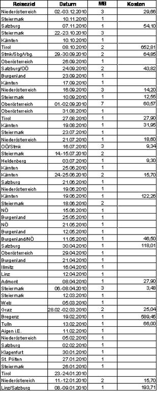 Im Jahr 2010 befanden sich bei der Durchführung der Auslandsdienstreisen in meiner Begleitung: